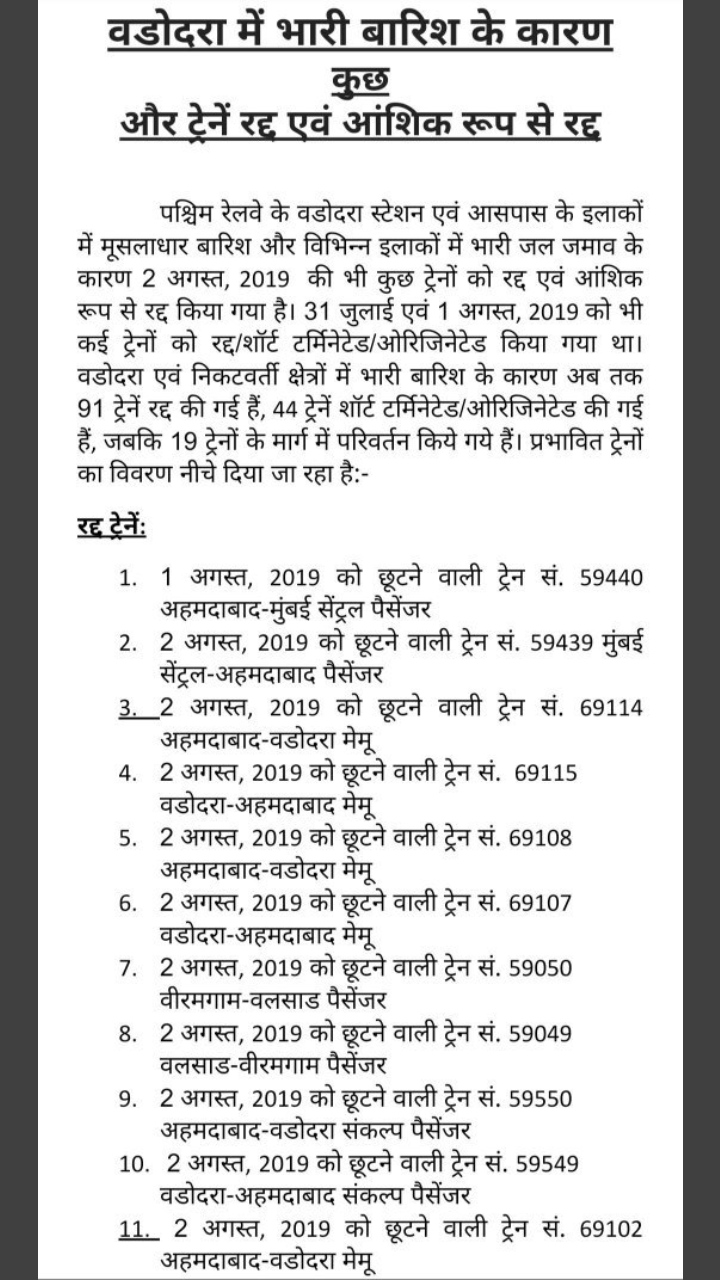 Uncategorisedवडोदरा स्टेशनपर जलजमाव की वजह से कई गाड़ियाँ मार्ग परावर्तित 2nd Aug 20192nd Aug 2019 Rail Duniya पश्चिम रेलवे और DRM वडोदरा के द्वारा सर्क्युलर ट्वीट किए जा रहे है। गाड़ियोंके मार्ग परावर्तित किए गए है। आइए चेक करते है। Share this: Click to share on WhatsApp (Opens in new window) WhatsApp Click to share on X (Opens in new window) X Click to share on Facebook (Opens in new window) Facebook Click to share on Telegram (Opens in new window) Telegram Click to email a link to a friend (Opens in new window) Email Like Loading... Related Published by Rail Duniya Rail Duniya is a magazine publishing all India train timings since 1988. View all posts by Rail Duniya
