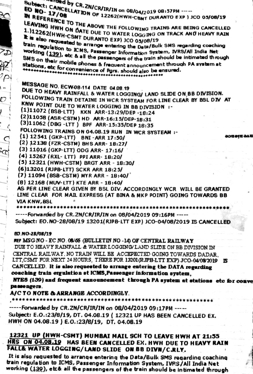 UncategorisedCentral Railway : 5th Aug 20195th Aug 2019 Rail Duniya Date: 5th August 13:00 Share this: Share on WhatsApp (Opens in new window) WhatsApp Share on X (Opens in new window) X Share on Facebook (Opens in new window) Facebook Share on Telegram (Opens in new window) Telegram Email a link to a friend (Opens in new window) Email Like Loading... Related Published by Rail Duniya Rail Duniya is a magazine publishing all India train timings since 1988. View all posts by Rail Duniya