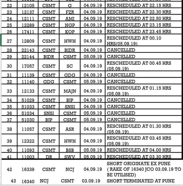 UncategorisedCentral Railway : update of long distance trains to and from Mumbai. 4th Sep 20194th Sep 2019 Rail Duniya Share this: Click to share on WhatsApp (Opens in new window) WhatsApp Click to share on X (Opens in new window) X Click to share on Facebook (Opens in new window) Facebook Click to share on Telegram (Opens in new window) Telegram Click to email a link to a friend (Opens in new window) Email Like Loading... Related Published by Rail Duniya Rail Duniya is a magazine publishing all India train timings since 1988. View all posts by Rail Duniya