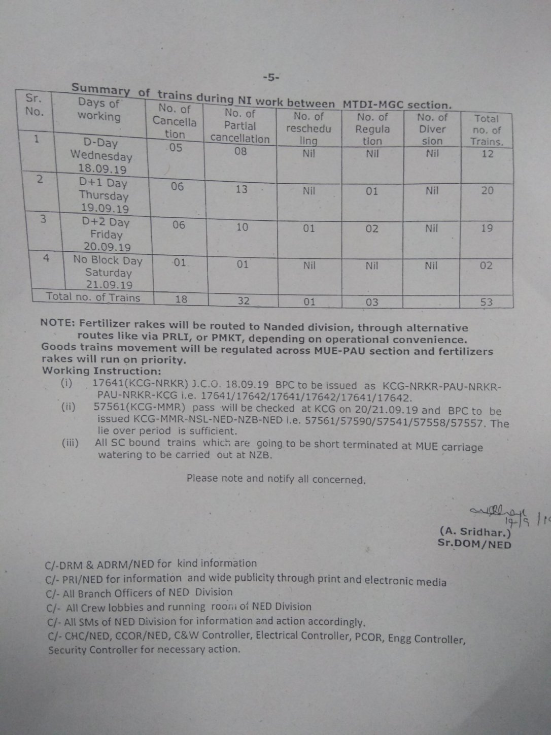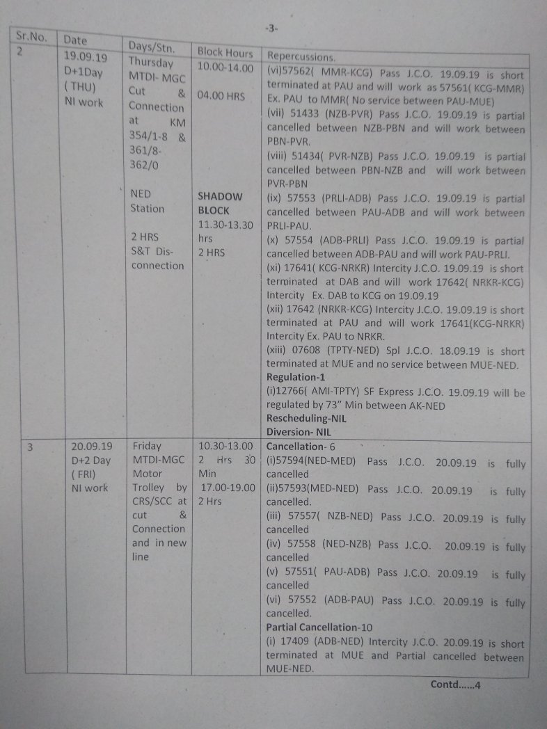 परिपत्रक में अपनी गाड़ियों की समयसारिणी देख ले।