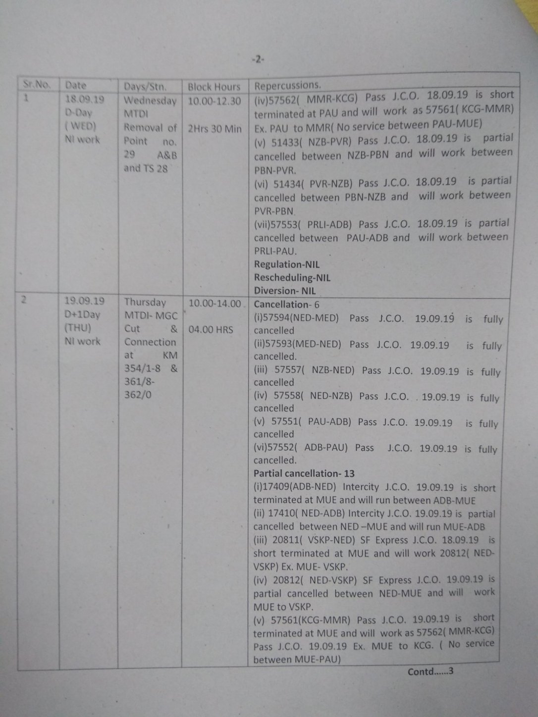 कृपया अकोला पूर्णा नान्देड काचेगुड़ा मार्ग के यात्री ध्यान दिजिएगा।