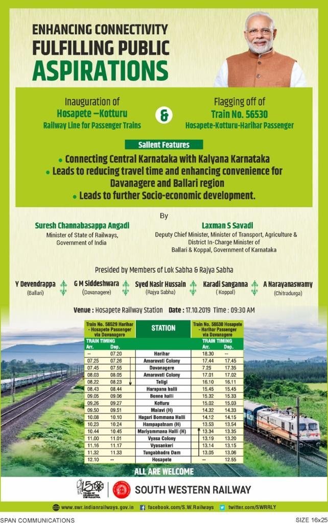 होसपेट कल्लुरु नई रेल लाइन लोकार्पण