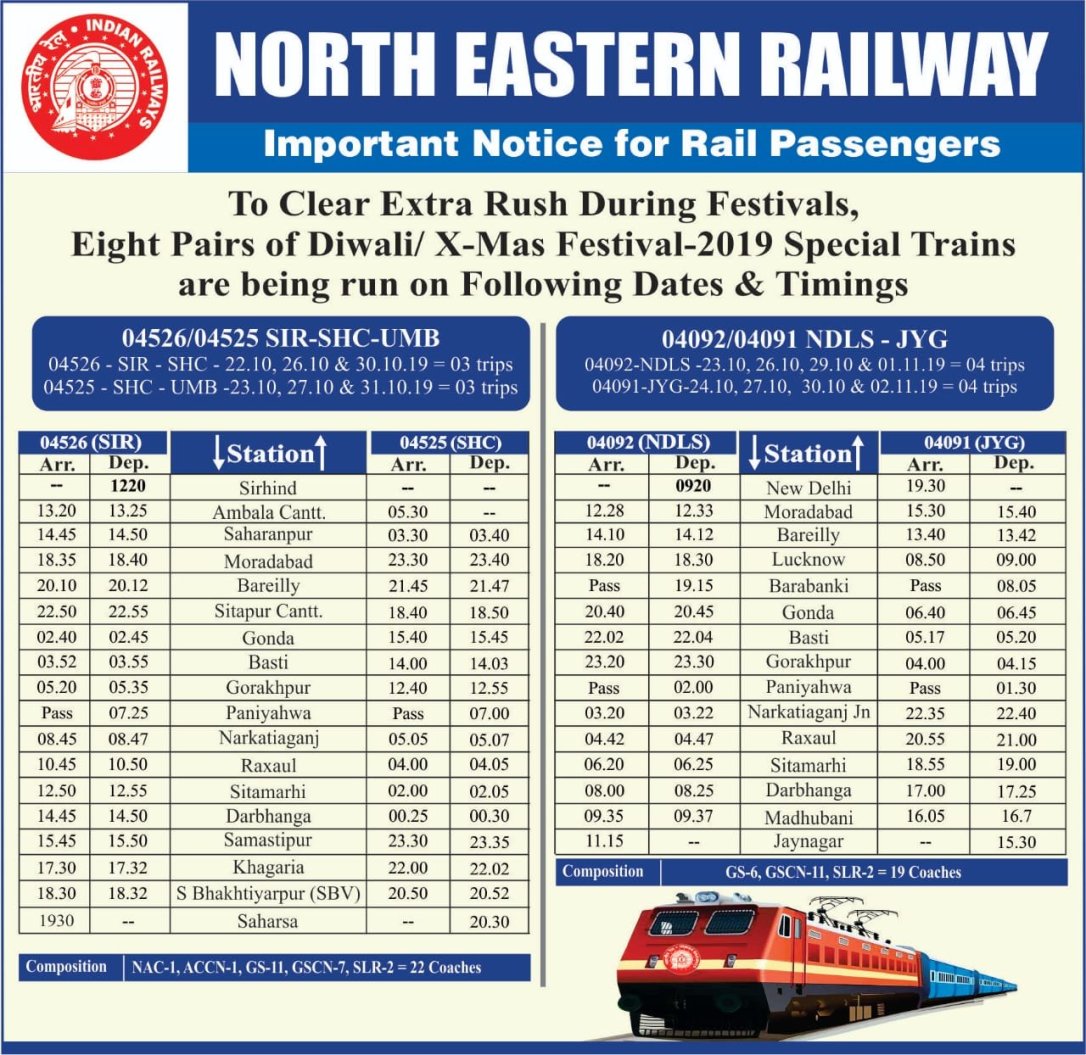 नई दिल्ली जयनगर और सहरसा सरहिंद छठ पूजा स्पेशल गाड़ियाँ