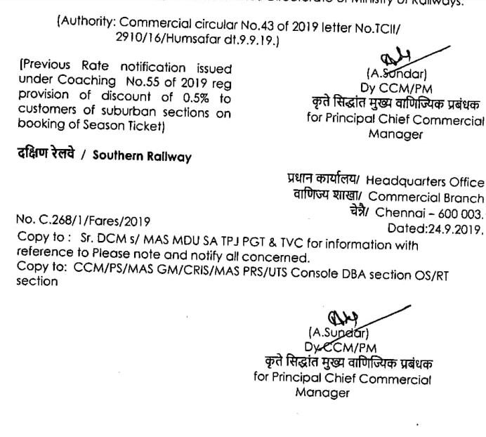 हमसफ़र एक्सप्रेस में ग्रेडेड डिस्काउंट स्किम वैलिड नही रहेगी।