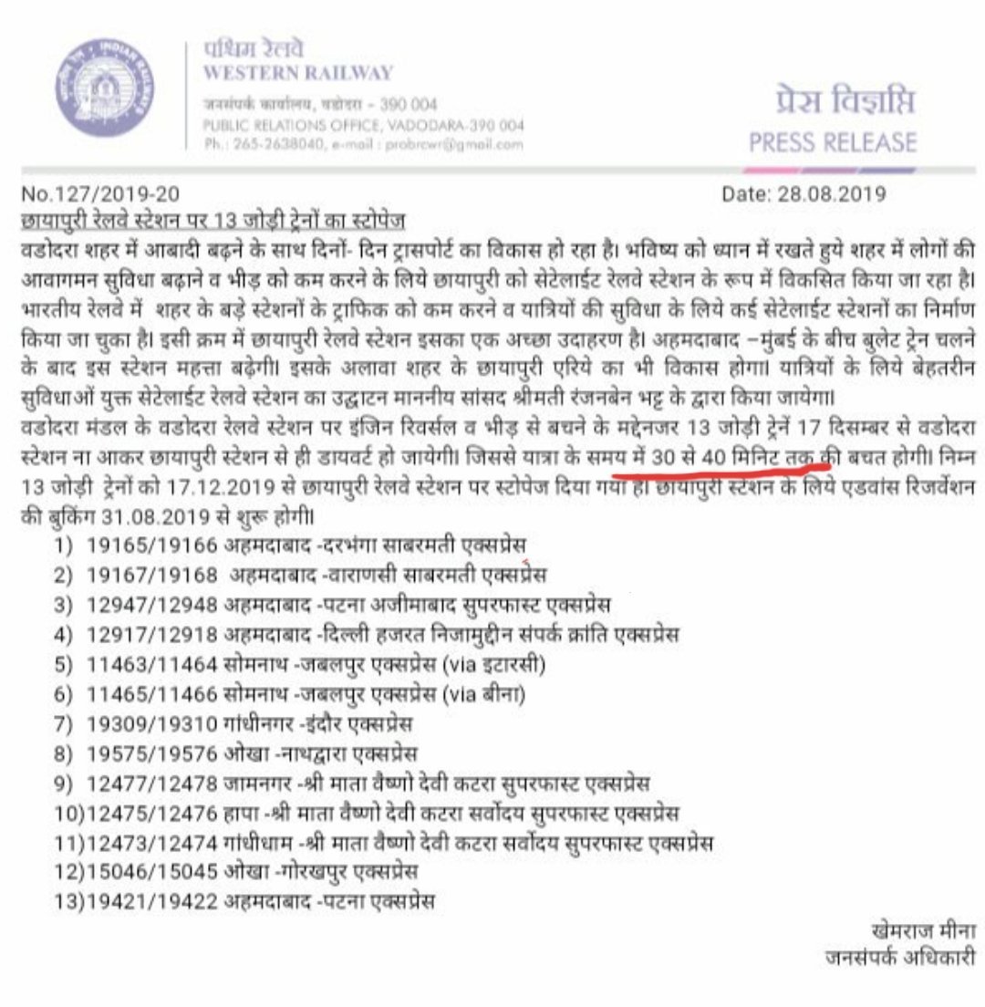 वैसे तो यह अगस्त महिनेकी खबर है, और रेल दुनिया ने आपको विस्तृत रूपसे प्रकाशित भी की है। लेकिन यह फिरसे वडोदरा स्टेशन से चढ़ने या उतरने वाले यात्रिओंको रिमाइंडर है, चेक कर लीजिए कहीं आपकी गाड़ी तो नही न कर रही बाईपास वडोदरा?