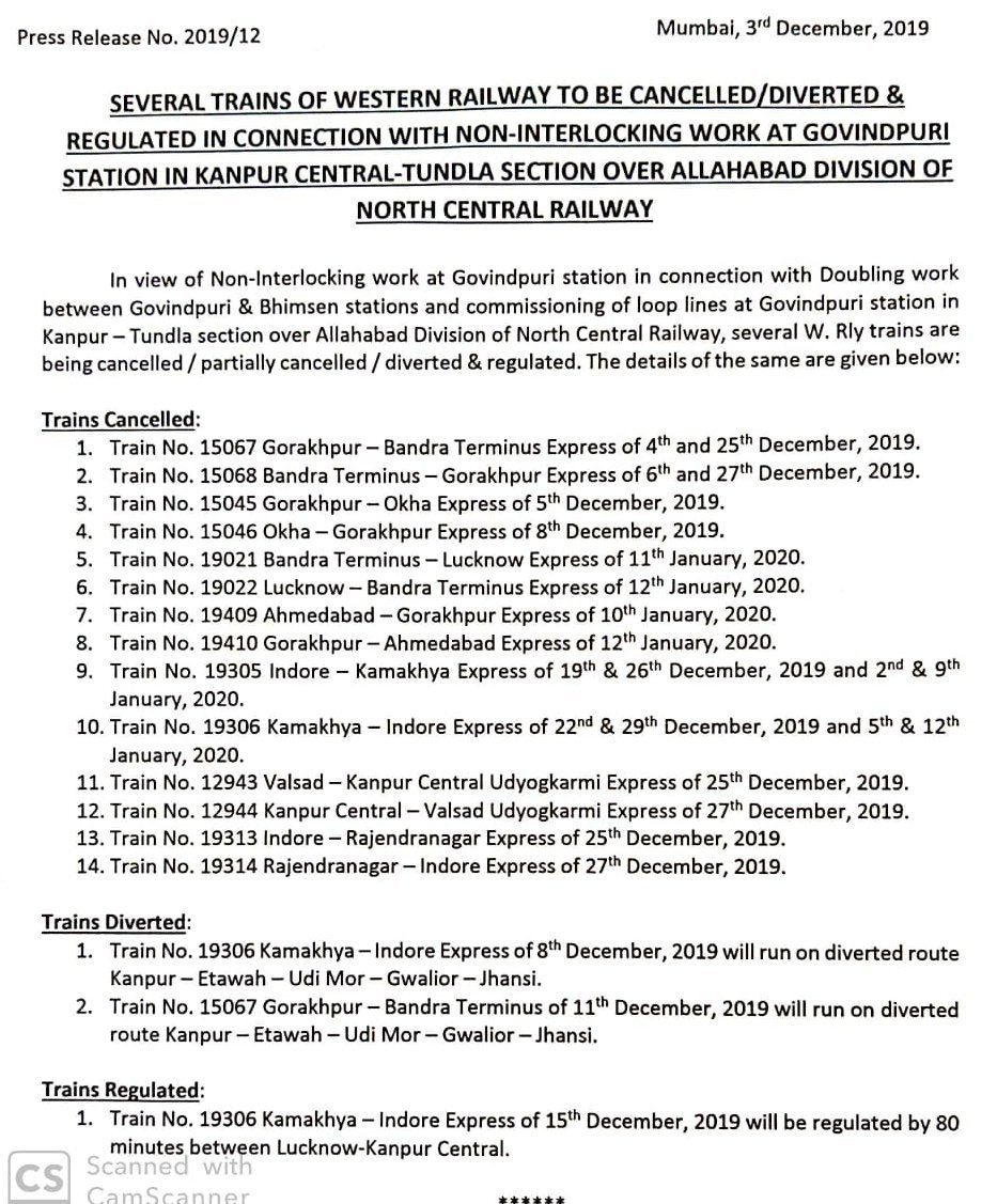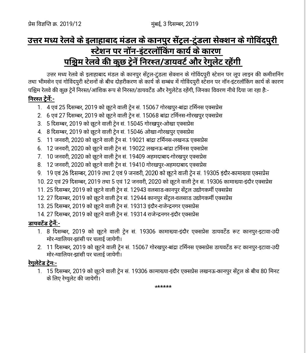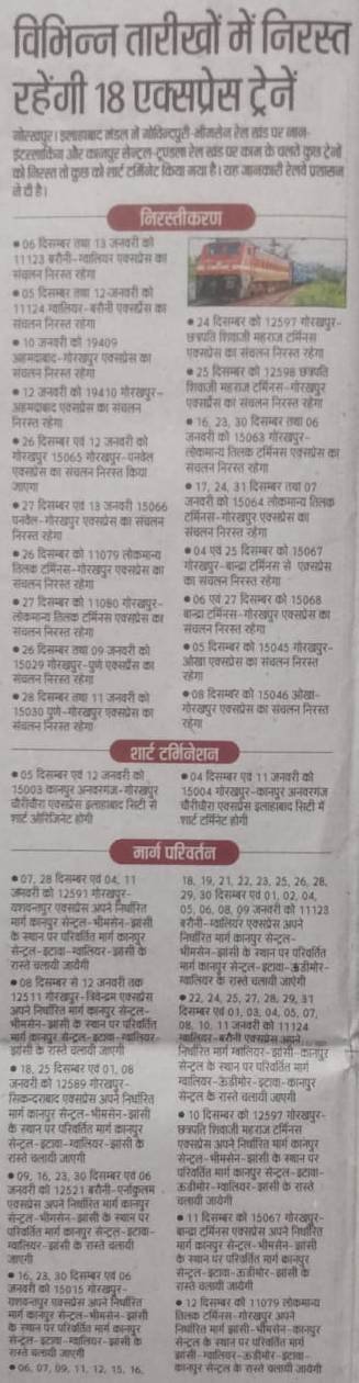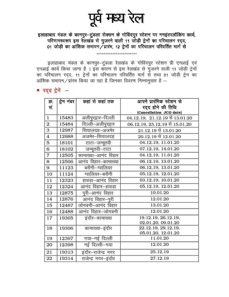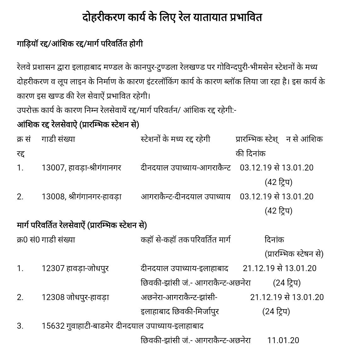 Uncategorisedउत्तर मध्य रेलवे के कानपुर – टूंडला मार्ग पर रेलवे ब्लॉक। 4th Dec 20194th Dec 2019 Rail Duniya Share this: Share on WhatsApp (Opens in new window) WhatsApp Share on X (Opens in new window) X Share on Facebook (Opens in new window) Facebook Share on Telegram (Opens in new window) Telegram Email a link to a friend (Opens in new window) Email Like Loading... Related Published by Rail Duniya Rail Duniya is a magazine publishing all India train timings since 1988. View all posts by Rail Duniya