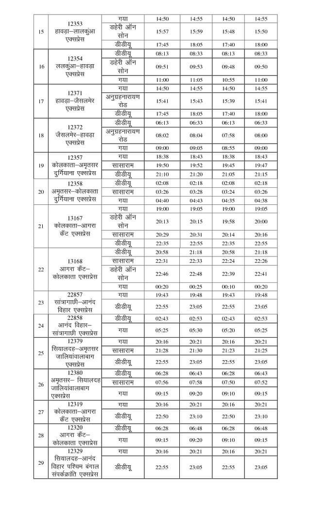 धनबाद – पण्डित दीनदयाल उपाध्याय जंक्शन मार्गपर गाड़ियोंकी गती बढ़ाई जाने से 19 गाड़ियोंके समय मे 10 से 30 मिनट तक स्थायी रूपसे परिवर्तन किया जा रहा है। कृपया परिपत्रक देखकर अपनी यात्रा का नियोजन करें।