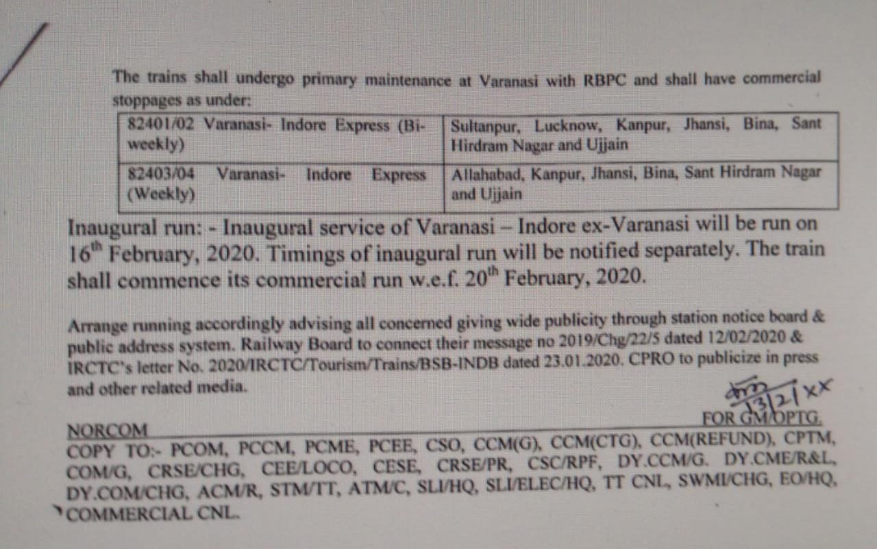 काशी महाकाल एक्सप्रेस का ऑफिशियल परिपत्रक यहाँपर दे रहे है।
