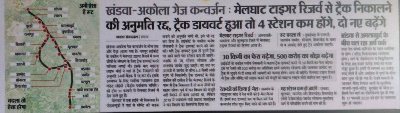 अकोला – खण्डवा – इन्दौर गेज कन्वर्शन का काम हिस्सोंमे मे ही सही लेकिन ज़ोरोंसे चल रहा है। अकोला – आकोट बड़ी लाइन पूर्ण हो चुकी है, बस निरीक्षण और मंजूरी बाकी है। जहाँतक अप्रेल में अकोला आकोट रेल सेवा शुरू हो जाना तय है।