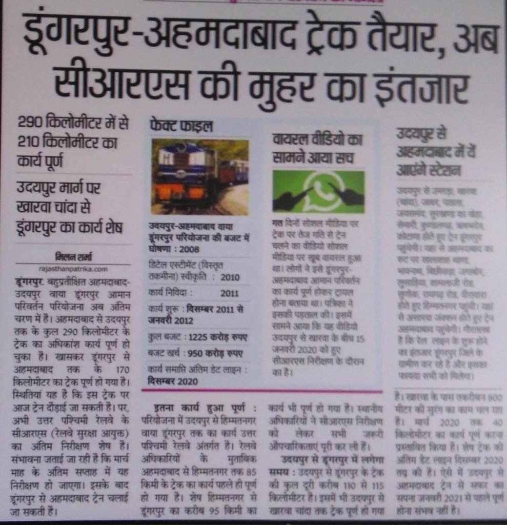 अहमदाबाद – उदयपुर गेज कन्वर्शन की खबरें भी उत्साह बढ़ाने वाली है।