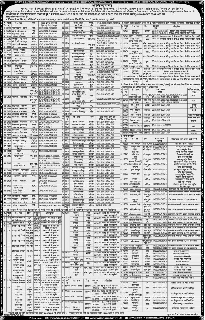यात्रिओंसे निवेदन है, निम्नलिखित परिपत्रक को देखें और अपनी रेल यात्रा का समुचीत नियोजन करे।