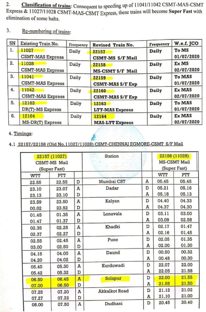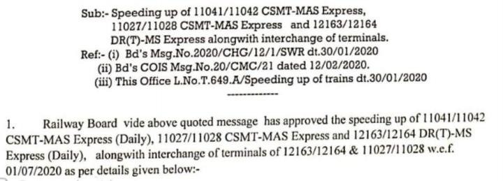 इसका पहला रिजल्ट देख लीजिए, मध्य रेलवे ने चेन्नई की ओर चलने वाली तीनों गाड़ियोंके समय मे जुलाई से कमी कर नया टाइम जारी किया है।