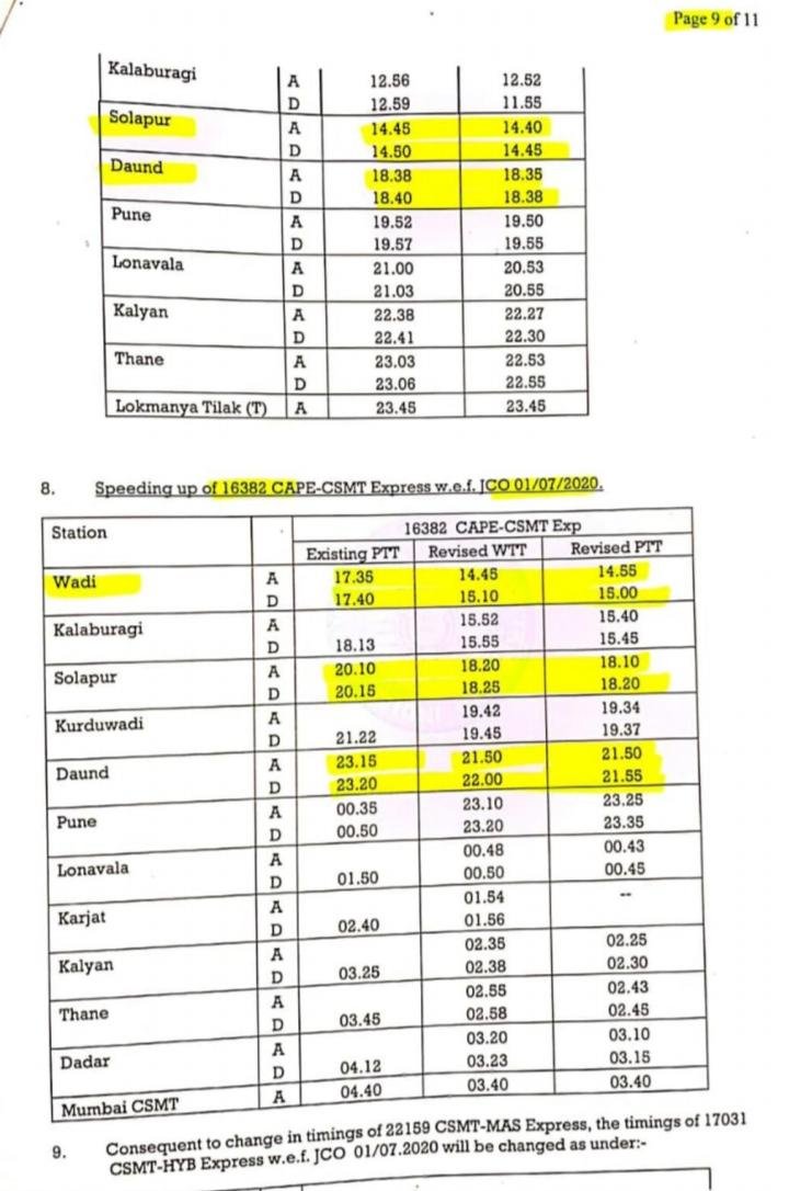 आने वाले जुलाई से तय है की कई गाड़ियोंके समय बदलेंगे और गाड़ियोंकी स्पीड बढनेसे गाड़ियोंका विस्तार भी होगा, मार्ग भी बदलेंगे, स्टोपेजेस भी कम किए जाएंगे और इन सब कारणोंसे गाड़ियोंके मार्ग समय भी कम होंगे।
