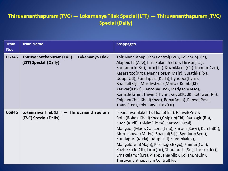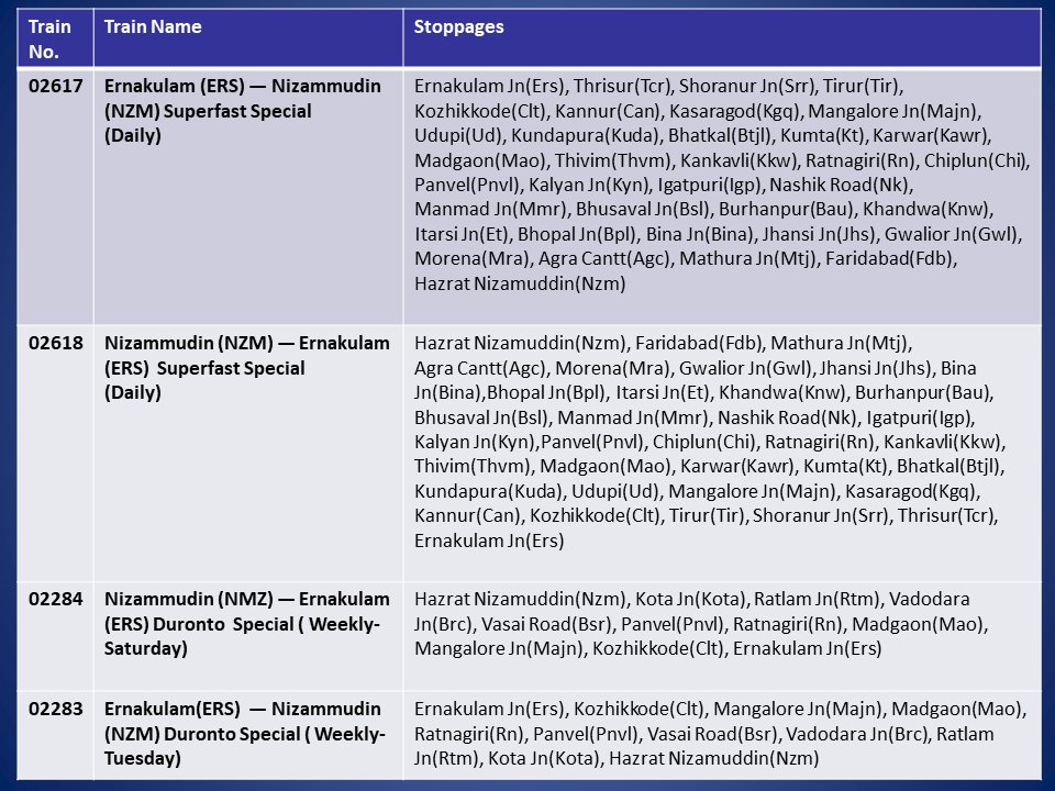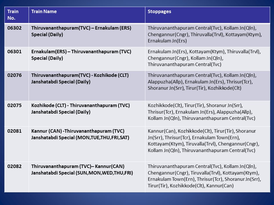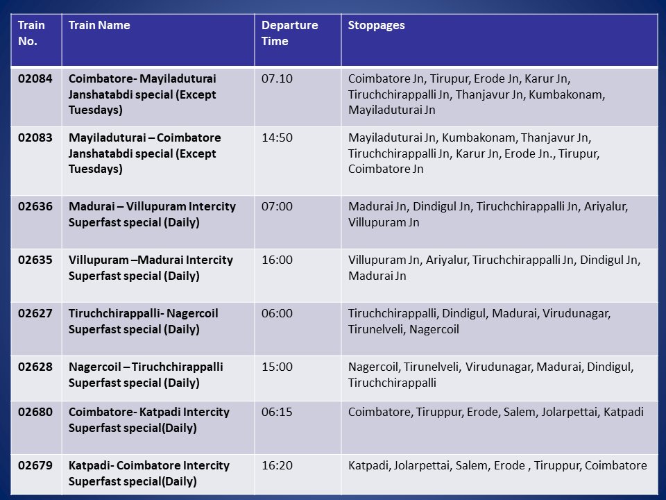 दिनांक 1 जुन से दक्षिण रेलवे ने इन्टरस्टेट याने राज्य अंतर्गत रेल गाड़ियाँ शुरू करने की घोषणा की है। यह कौनसी गाड़ियाँ रहेंगी, इसका परीपत्रक यहां पर दे रहे है। कर्नाटक राज्य में पहले ही राज्य अन्तर्गत गाड़ियाँ शुरू की जा चुकी है।