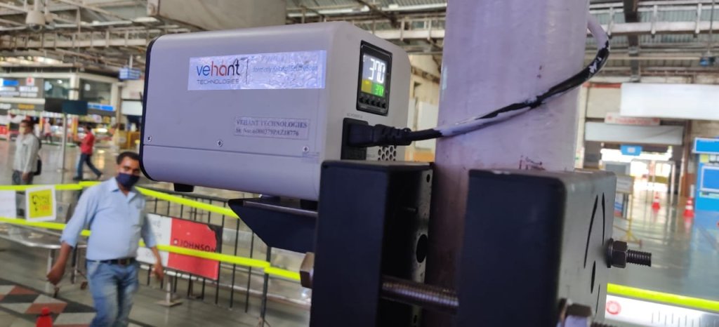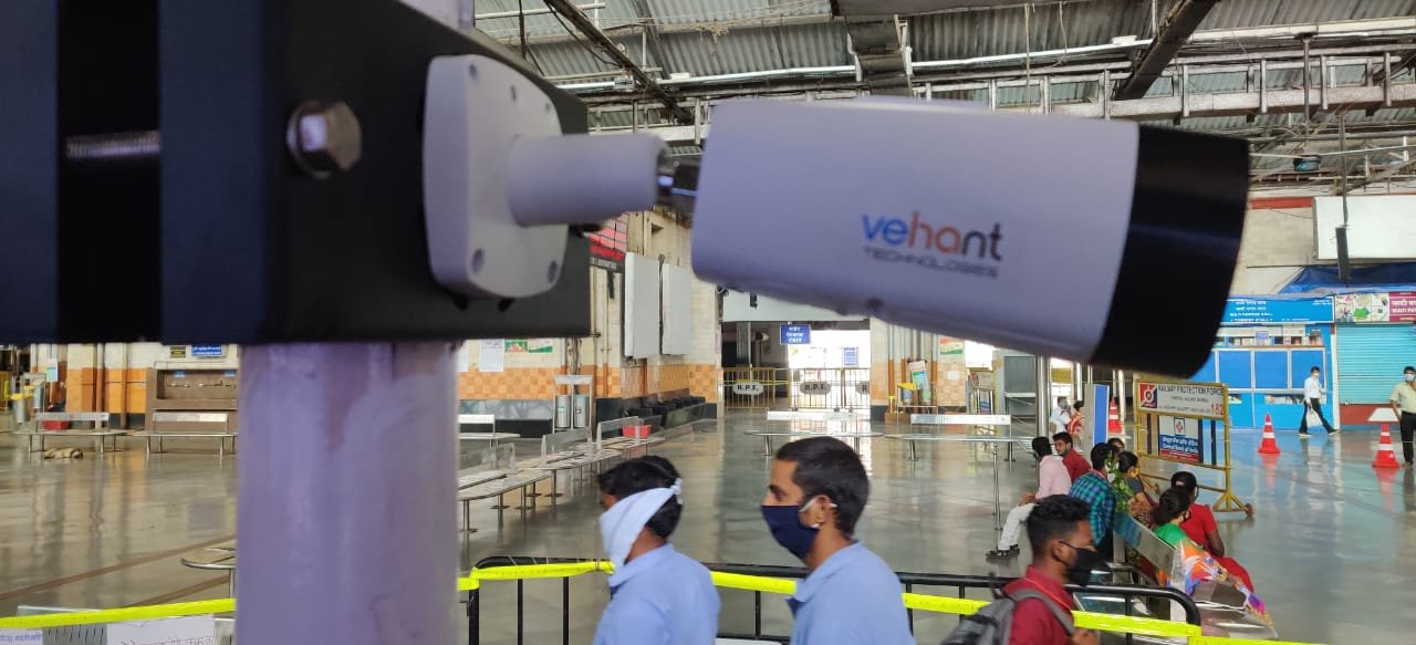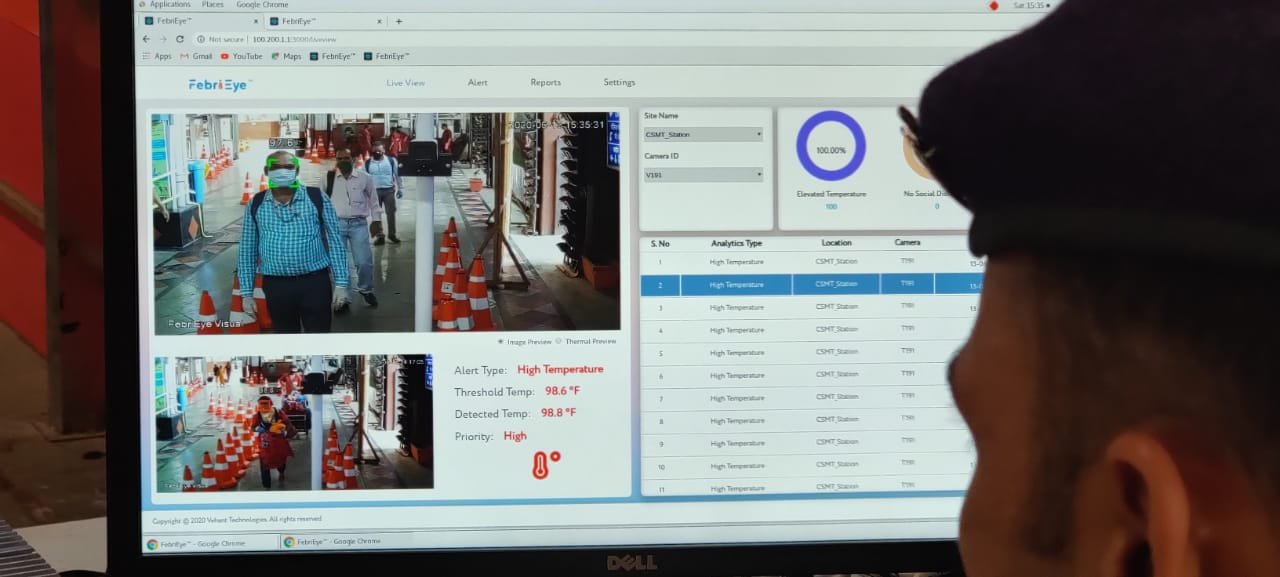 Presently all passengers boarding Mail/Express trains at CSMT and LTT are being scanned by Febrieye at the entry point for higher temperature before going inside the platform for boarding. All railway staff and officers coming for duty at these two major stations are also being screened through this AI (Artificial Intelligence) based camera.