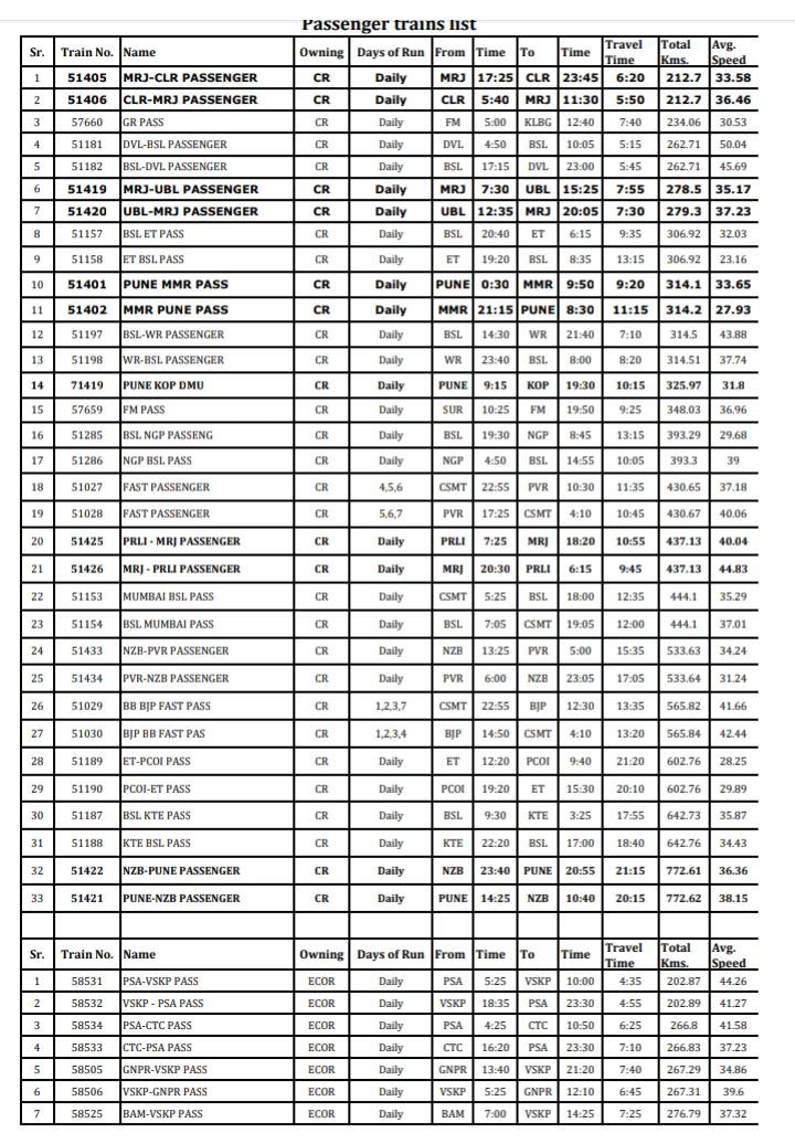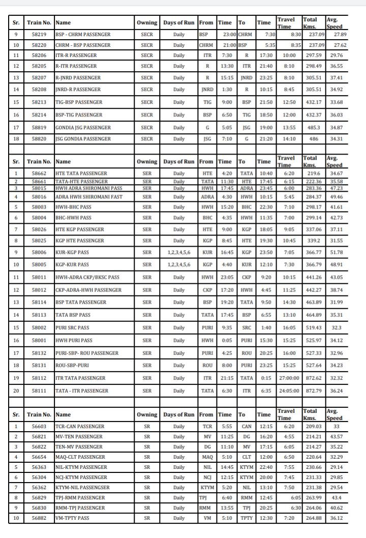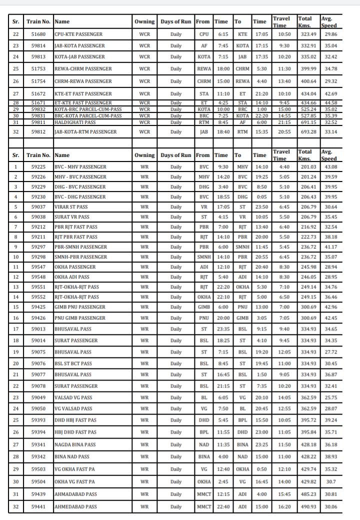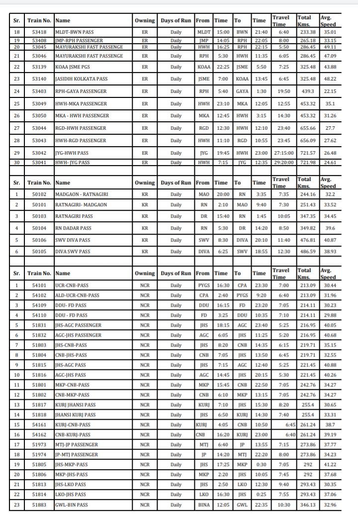 रेल प्रशासन ने अपने सभी 18 क्षेत्रीय रेलवे के कार्यालयोंको यह सूचित किया है की वह अपने क्षेत्र में जो भी सवारी गाड़ियाँ, डेमू, मेमू ट्रेन्स 200 किलोमीटर से ज्यादा का सफर तय करती है उन्हें तत्काल प्रभाव से एक्सप्रेस श्रेणी में परावर्तित करें। साथ ही ऐसी गाड़ियोंकी लिस्ट भी उन्होंने जारी कर दी है। यदि ऐसी गाड़ियोंके स्टापेजेस कम किए जा सकते हो तो उन्हे भी बन्द किए जाने की सूचना दी गयी है।