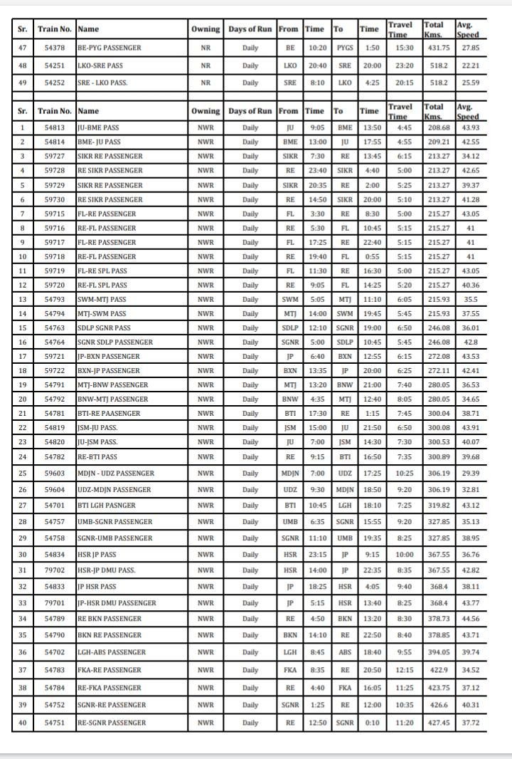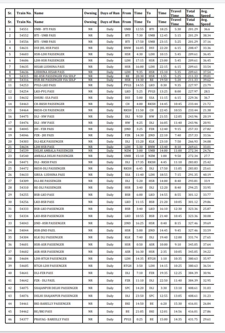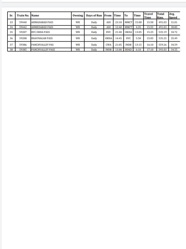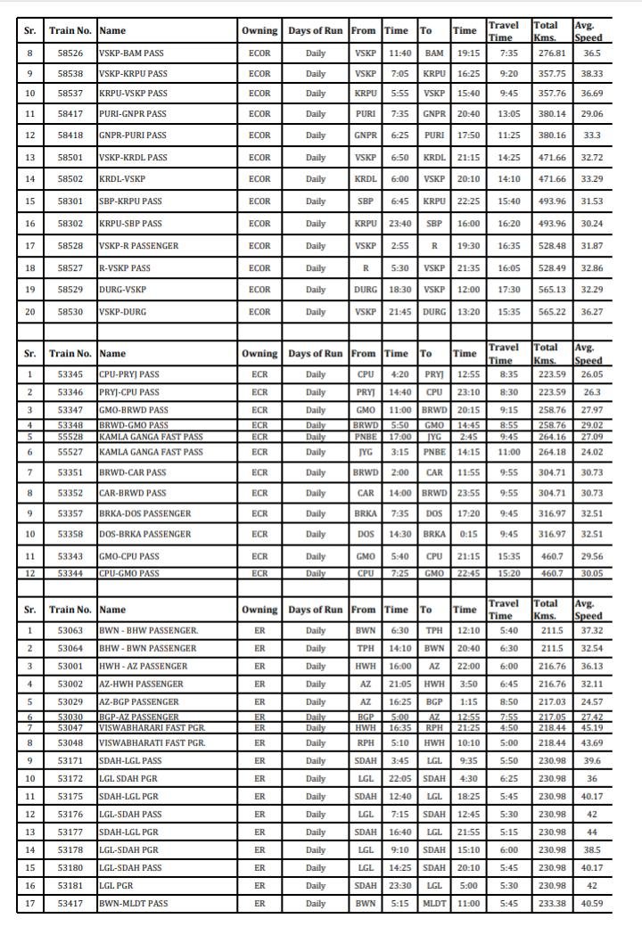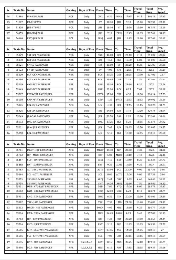 रेल प्रशासन ने अपने सभी 18 क्षेत्रीय रेलवे के कार्यालयोंको यह सूचित किया है की वह अपने क्षेत्र में जो भी सवारी गाड़ियाँ, डेमू, मेमू ट्रेन्स 200 किलोमीटर से ज्यादा का सफर तय करती है उन्हें तत्काल प्रभाव से एक्सप्रेस श्रेणी में परावर्तित करें। साथ ही ऐसी गाड़ियोंकी लिस्ट भी उन्होंने जारी कर दी है। यदि ऐसी गाड़ियोंके स्टापेजेस कम किए जा सकते हो तो उन्हे भी बन्द किए जाने की सूचना दी गयी है।
