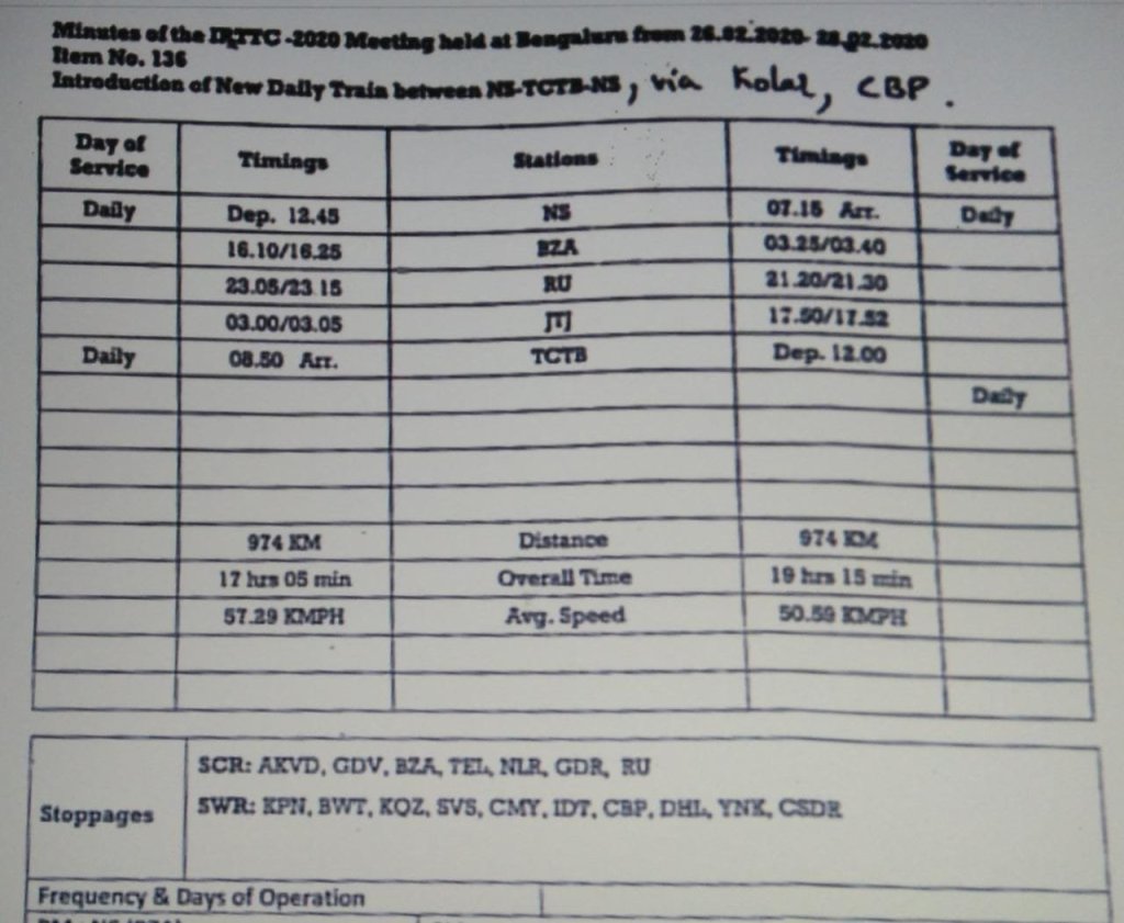 11: नई गाड़ी नरसापुर चन्नासन्दरा नरसापुर रोजाना एक्सप्रेस गाड़ी