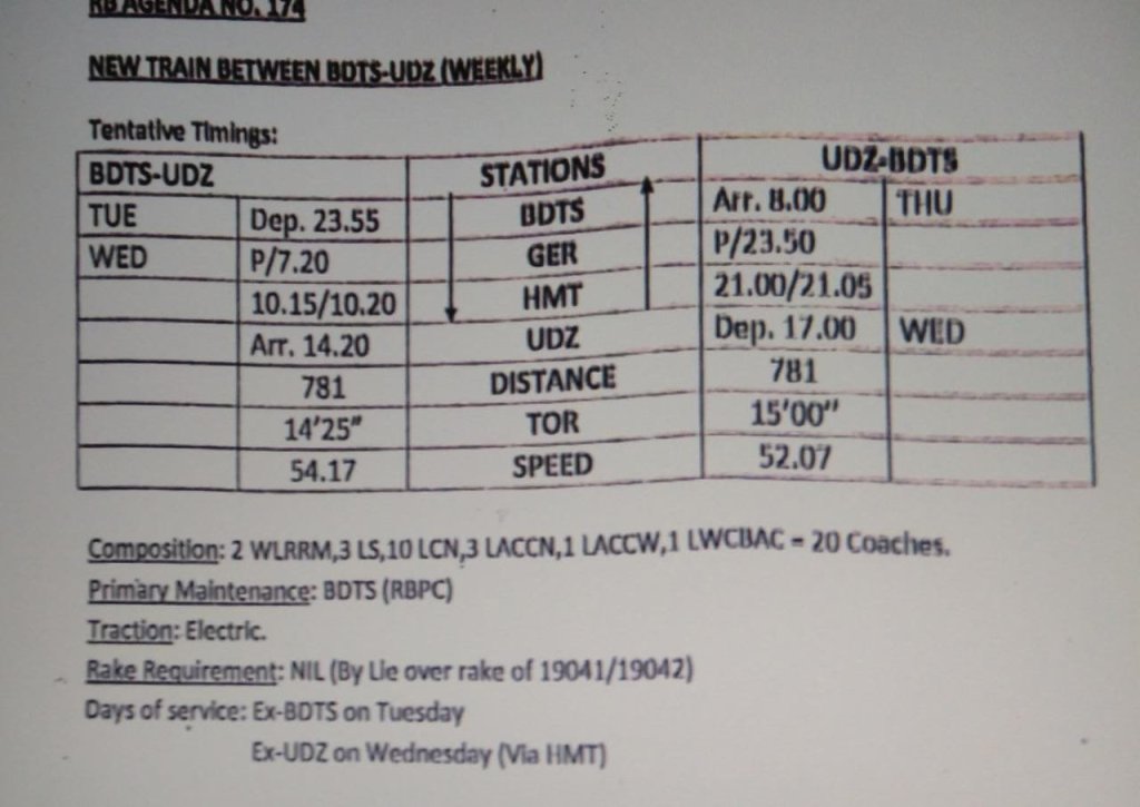 18: नई गाड़ी बांद्रा उदयपुर सिटी बांद्रा हिम्मतनगर होते हुए साप्ताहिक गाड़ी