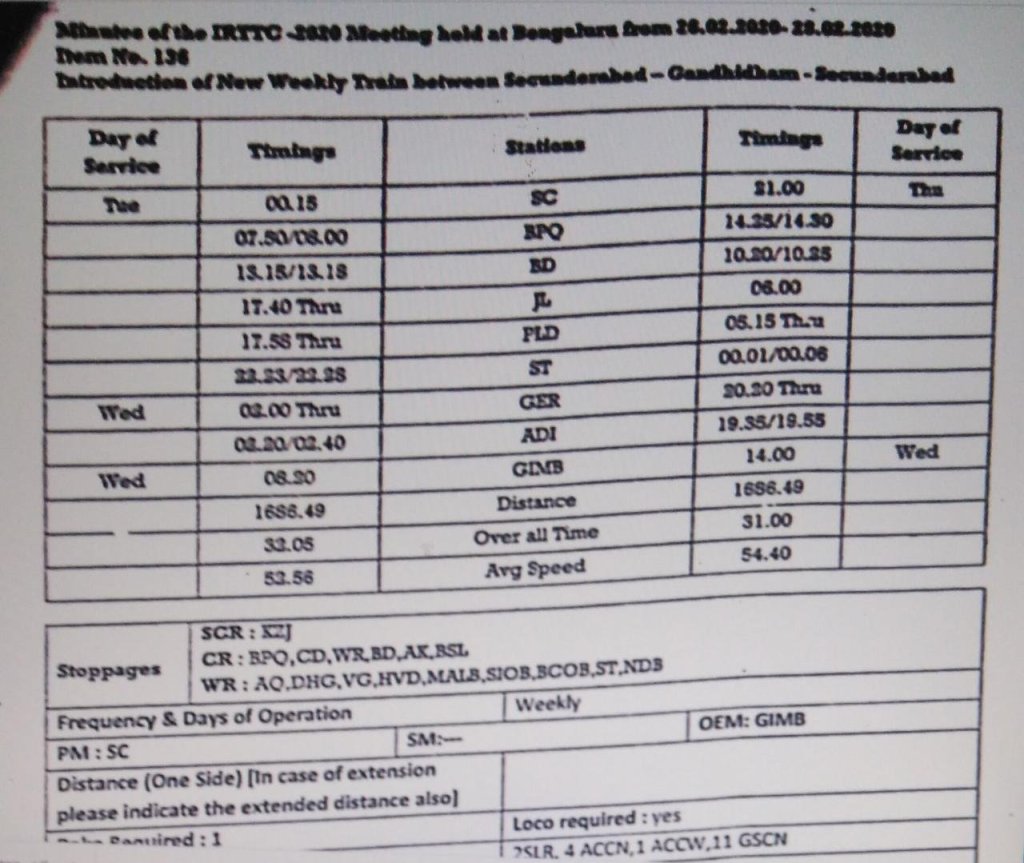 22: नई गाड़ी सिकन्दराबाद गांधीधाम सिकन्दराबाद साप्ताहिक एक्सप्रेस बल्हारशहा, वर्धा, भुसावल, सूरत, अहमदाबाद, वीरमगाम होकर