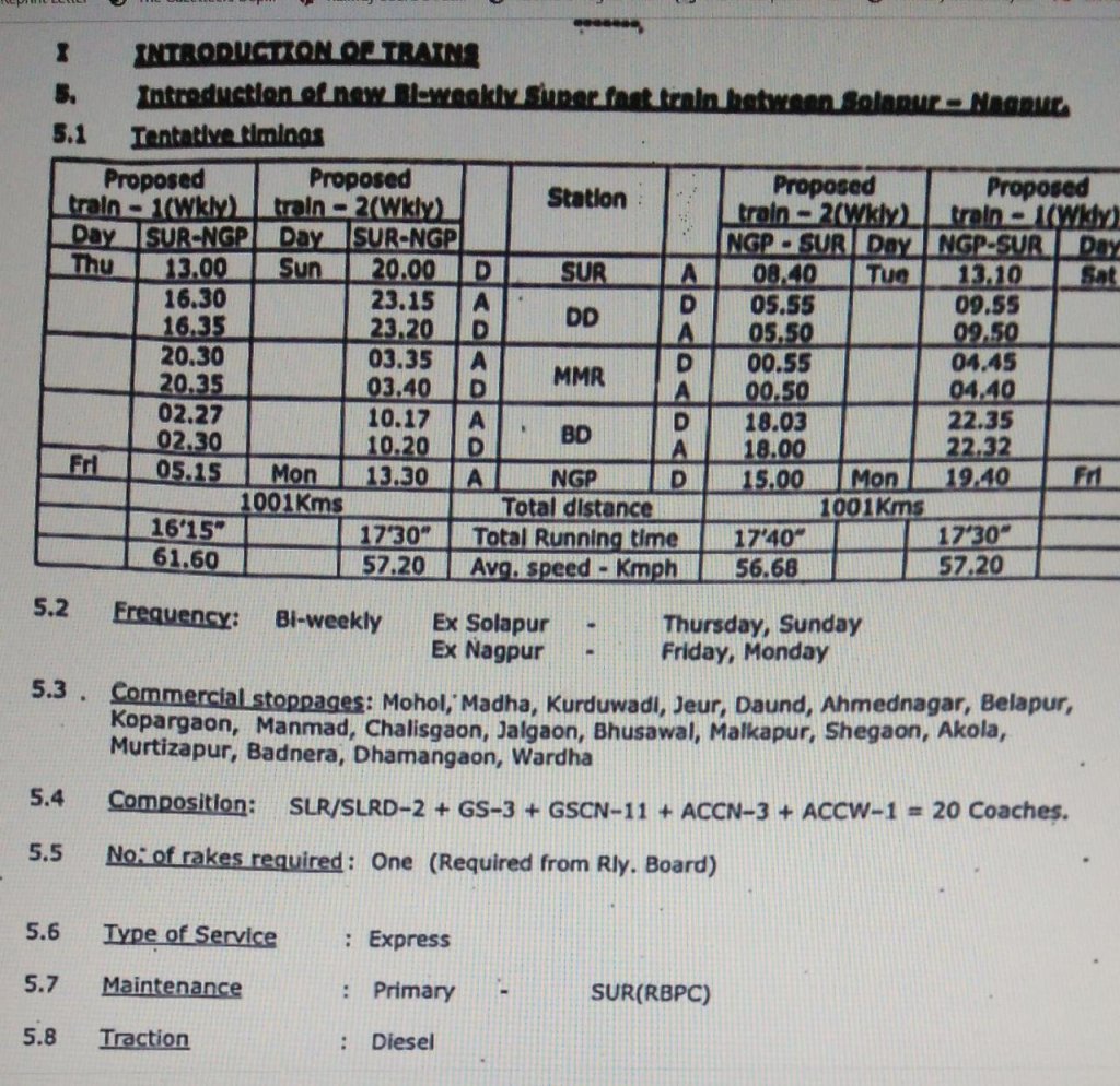 23: नई गाड़ी सोलापुर नागपुर सोलापुर द्विसाप्ताहिक एक्सप्रेस। यह गाड़ी शुरू होने के बाद महाराष्ट्र एक्सप्रेस की गोंदिया दौंड सोलापुर स्लिप कोच सर्विस बन्द कर दी जाएगी।