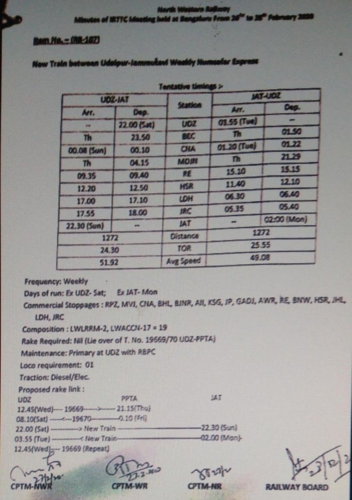 24: नई गाड़ी उदयपुर सिटी जम्मूतवी उदयपुर सिटी साप्ताहिक हमसफ़र एक्सप्रेस