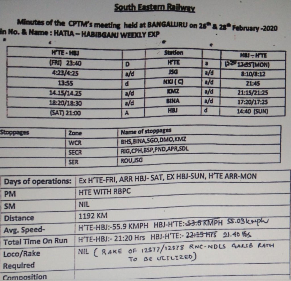 27: नई गाड़ी हटिया हबीबगंज हटिया साप्ताहिक एक्सप्रेस बिना कटनी बिलासपुर होकर