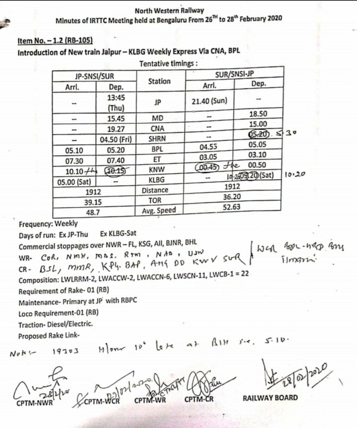 28: नई गाड़ी जयपुर कलबुर्गी जयपुर साप्ताहिक एक्सप्रेस अजमेर, चित्तौड़गढ़, रतलाम, नागदा, उज्जैन, भोपाल, इटारसी, भुसावल, मनमाड़, कोपरगाँव, अहमदनगर, दौंड, सोलापुर होकर