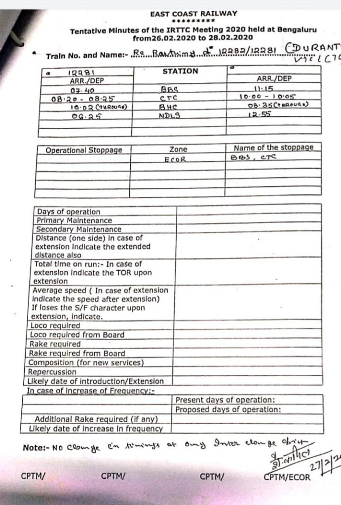 कुछ गाड़ियोंका री रूटिंग याने मार्ग के पुनर्निर्धारण का नियोजन है। उसमें 22201/22202 पूरी सियालदाह दुरंतो एक्सप्रेस, 12282/12281 भुबनेश्वर नई दिल्ली के बीच चलनेवाली राजधानी एक्सप्रेस कटक होकर चलेगी।
