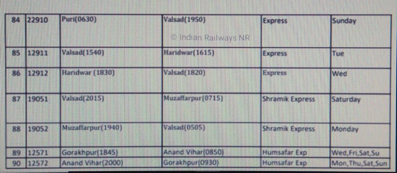 इसी सेवाओंका आगे विस्तार करते हुए, रेल प्रशासन यात्रिओंकी सेवा में और 90 गाड़ियाँ जुलाई के पहले सप्ताह में शुरू करने जा रहा है। हमारे पास एक लिस्ट आयी है, वह हम आपके साथ शेयर कर रहे है। अभी गाड़ियाँ शुरू करने की अधिकृत सूचना का इंतजार कीजिए। जल्द ही सूचना आने वाली है, तब वह भी हम आपके साथ शेयर करेंगे।