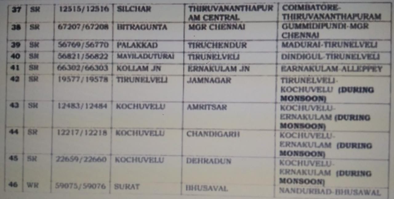 39: 56769/70 पलक्कड़ तिरुचेंदुर सवारी मदुराई तिरुनेलवेली रद्द रहेगी