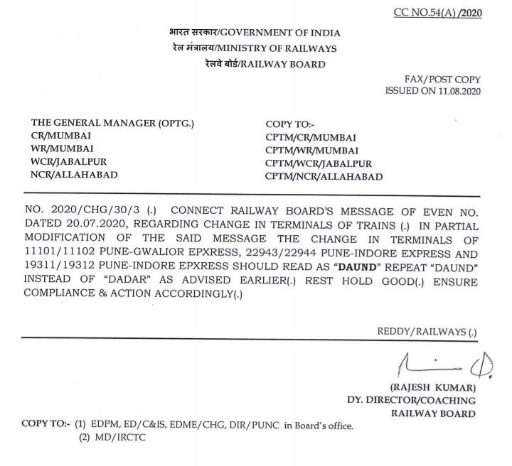 Uncategorisedयह लीजिए, दादर नही दौंड ही है। 11th Aug 2020 Rail Duniya Share this: Share on WhatsApp (Opens in new window) WhatsApp Share on X (Opens in new window) X Share on Facebook (Opens in new window) Facebook Share on Telegram (Opens in new window) Telegram Email a link to a friend (Opens in new window) Email Like Loading... Related Published by Rail Duniya Rail Duniya is a magazine publishing all India train timings since 1988. View all posts by Rail Duniya