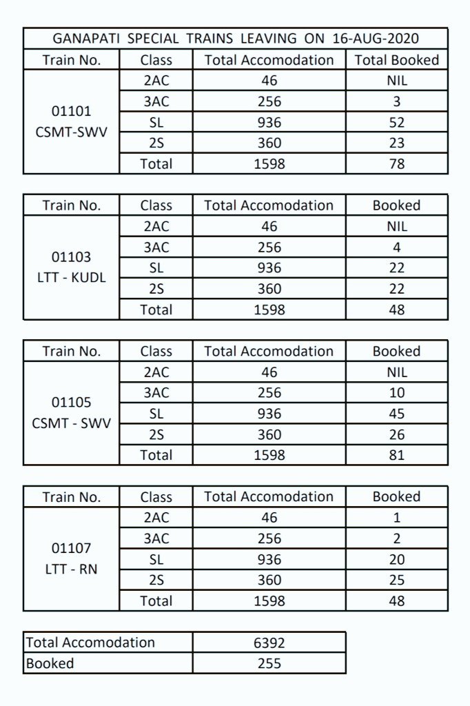 पहले ही संक्रमण के हालात उसमे यात्रिओंको कोरंटाइन किए जाने का सताए जानेवाला डर। सारे गणेशोत्सव के लिए घर जानेवाले यात्री सड़क मार्ग से 8/10 पहले ही गाँवोंके तरफ निकल लिए। सबसे बड़ी तकलीफ़ यह थी, राज्य शासन का नियम, जिसमे राज्यान्तर्गत रेल यात्रा करने की रेलवे सिस्टम द्वारा ही मनाही कराई गई थी।