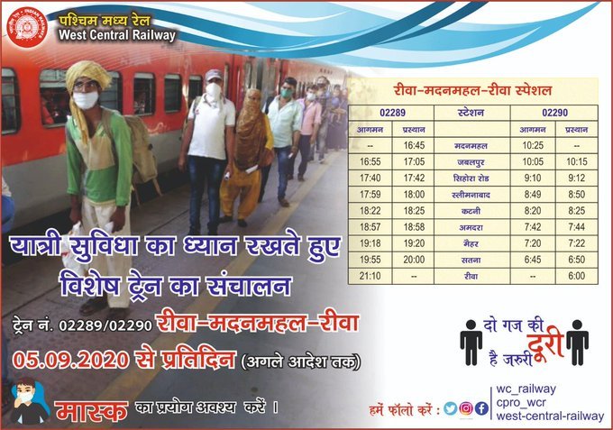 3: 02289/02290 रीवा मदनमहाल रीवा स्पेशल