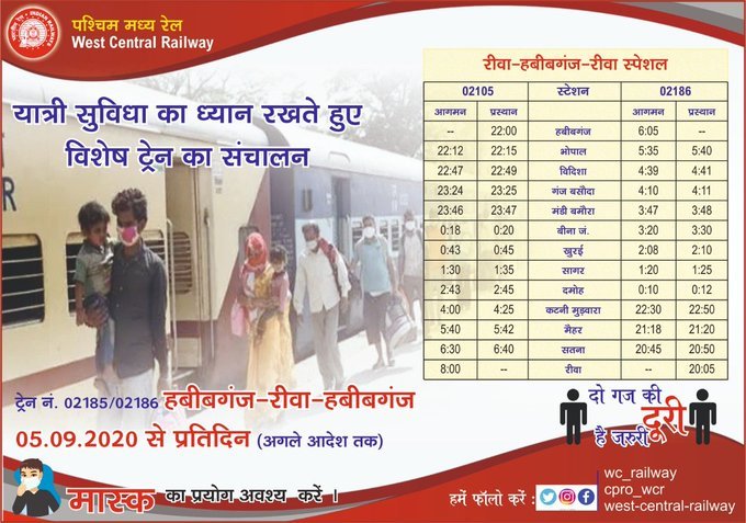 4: 02185/02186 रीवा हबीबगंज रीवा स्पेशल