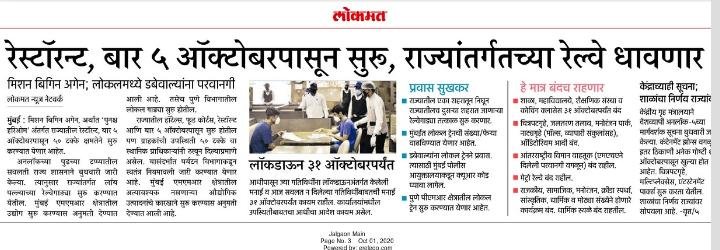 केन्द्रच्या “अनलॉक – 5” च्या सूचनां पाठोपाठ महाराष्ट्र राज्य शासनानेही आपल्या मिशन बिगिन अगेन च्या सूचना जाहिर केल्यात.
