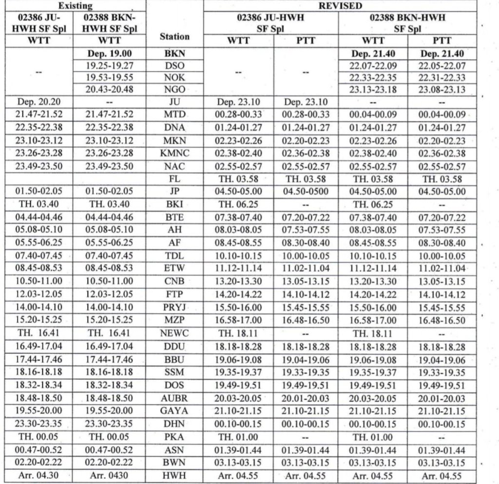 02386 जोधपुर हावडा एक्सप्रेस और 02388 बीकानेर हावडा एक्सप्रेस का भी समय परिवर्तन होने जा रहा है।