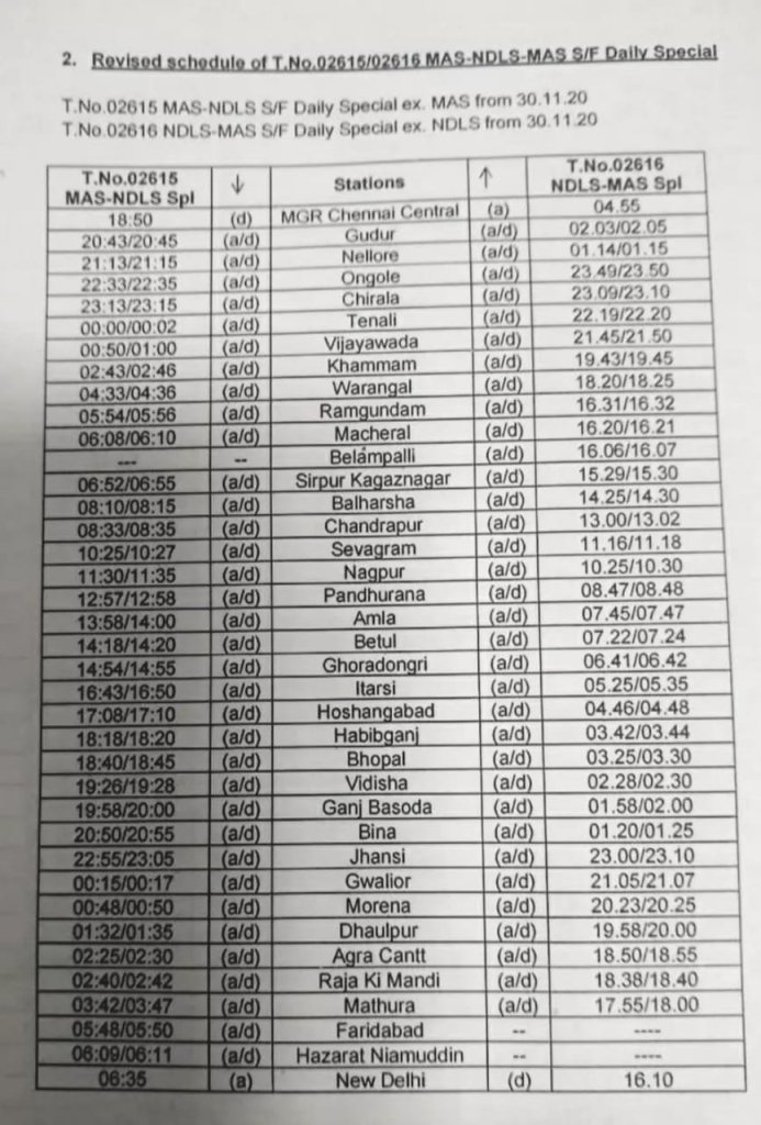02615/16 चेन्नई नई दिल्ली चेन्नई ग्रैंड ट्रंक एक्सप्रेस