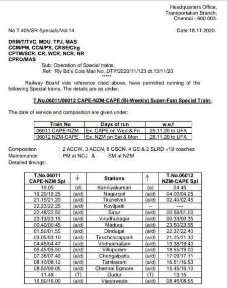 06011/12 कन्याकुमारी हज़रत निजामुद्दीन कन्याकुमारी द्विसाप्ताहिक एक्सप्रेस यह हो सकता है कि 16317/18 हिमसागर साप्ताहिक का जीरो बेस टाइम्टेबलिंग में बदला रूप है।