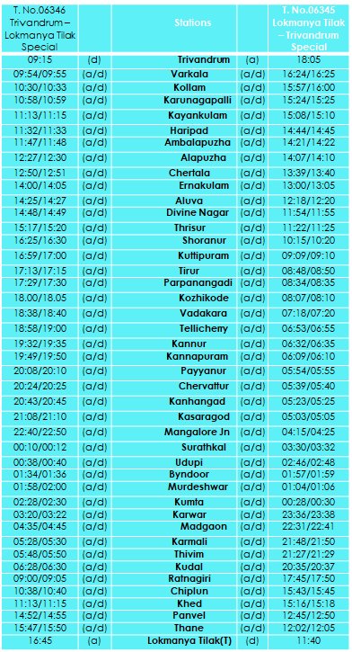2: 16345/46 तिरुवनंतपुरम लोकमान्य तिलक टर्मिनस तिरुवनंतपुरम नेत्रावती स्पेशल एक्सप्रेस वाया कोंकण रेलवे