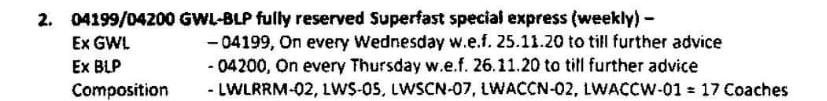 यात्रीगण कृपया ज्ञात रहे, यह सारी गाड़ियाँ केवल आरक्षित आसन व्यवस्थाओंके साथ चलाई जा रही है।