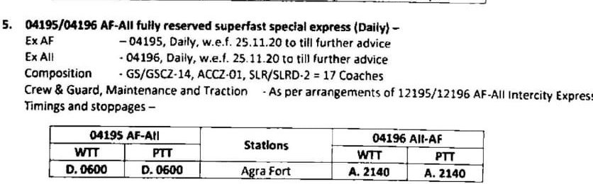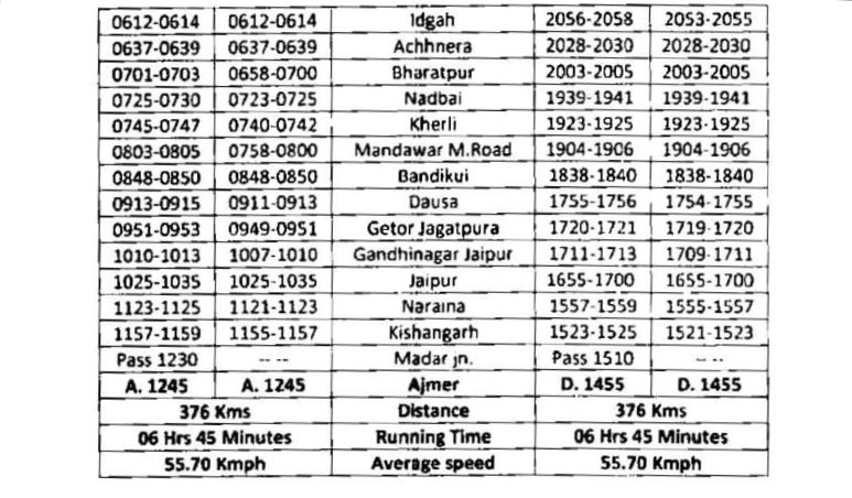 5: 04195/96 आग्रा फोर्ट अजमेर आग्रा फोर्ट प्रतिदिन स्पेशल, बदले हुए समयसारणी के साथ