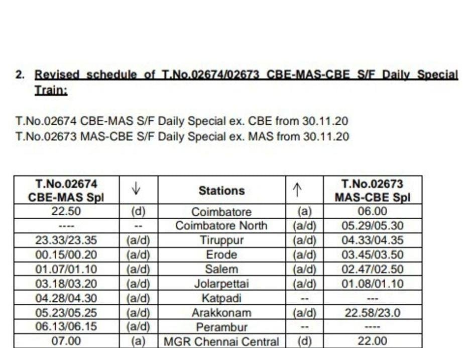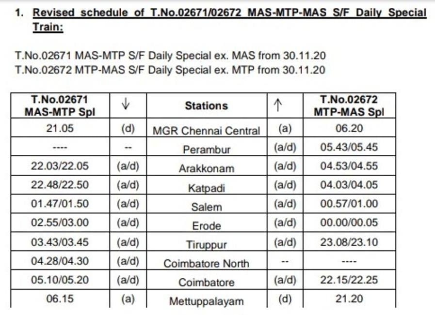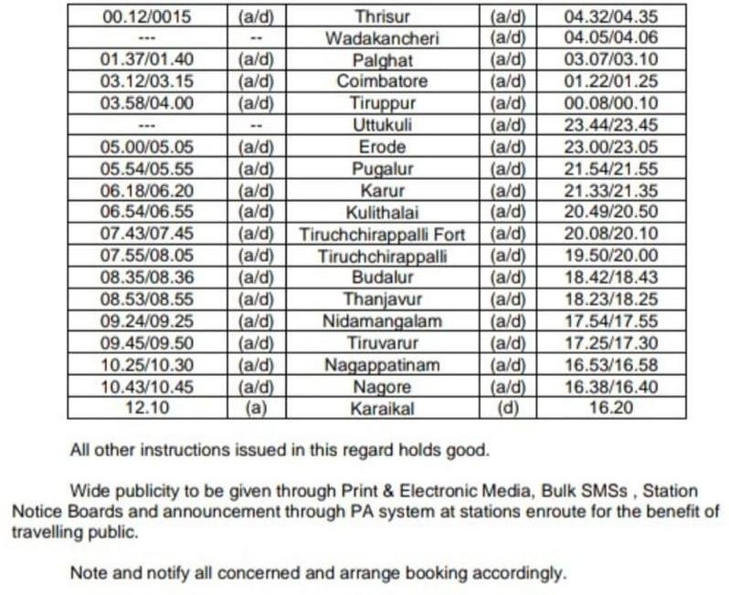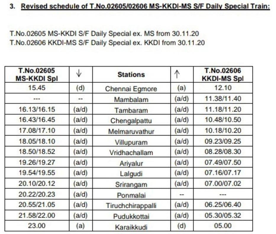 Uncategorisedदक्षिण रेलवे की 5 जोड़ी गाड़ियाँ बदले समयसारणी के साथ 30 नवम्बर से चलनेवाली है, आइए देखते है। 24th Nov 202024th Nov 2020 Rail Duniya Share this: Share on WhatsApp (Opens in new window) WhatsApp Share on X (Opens in new window) X Share on Facebook (Opens in new window) Facebook Share on Telegram (Opens in new window) Telegram Email a link to a friend (Opens in new window) Email Like Loading... Related Published by Rail Duniya Rail Duniya is a magazine publishing all India train timings since 1988. View all posts by Rail Duniya