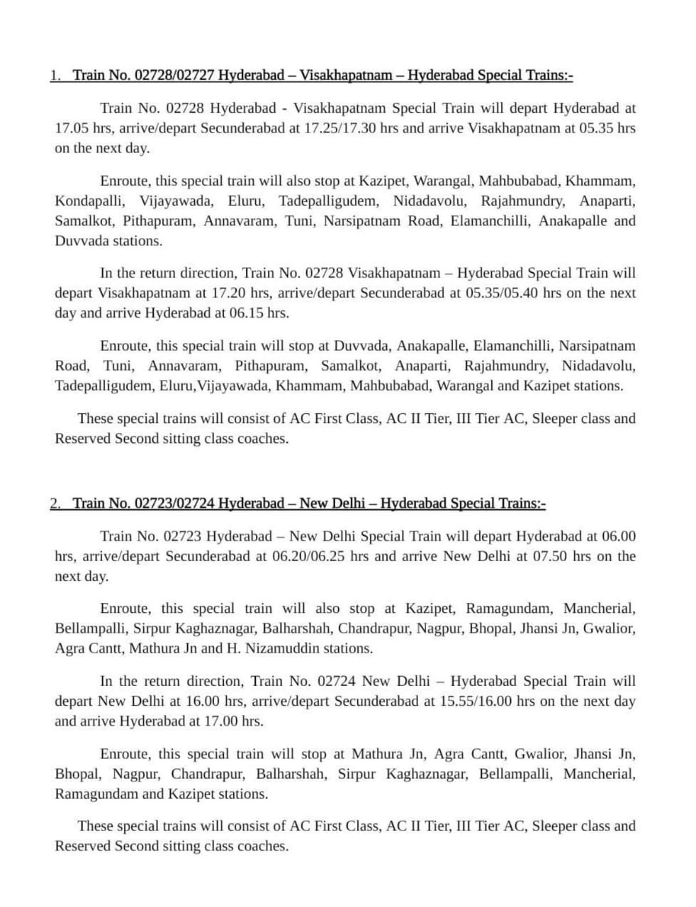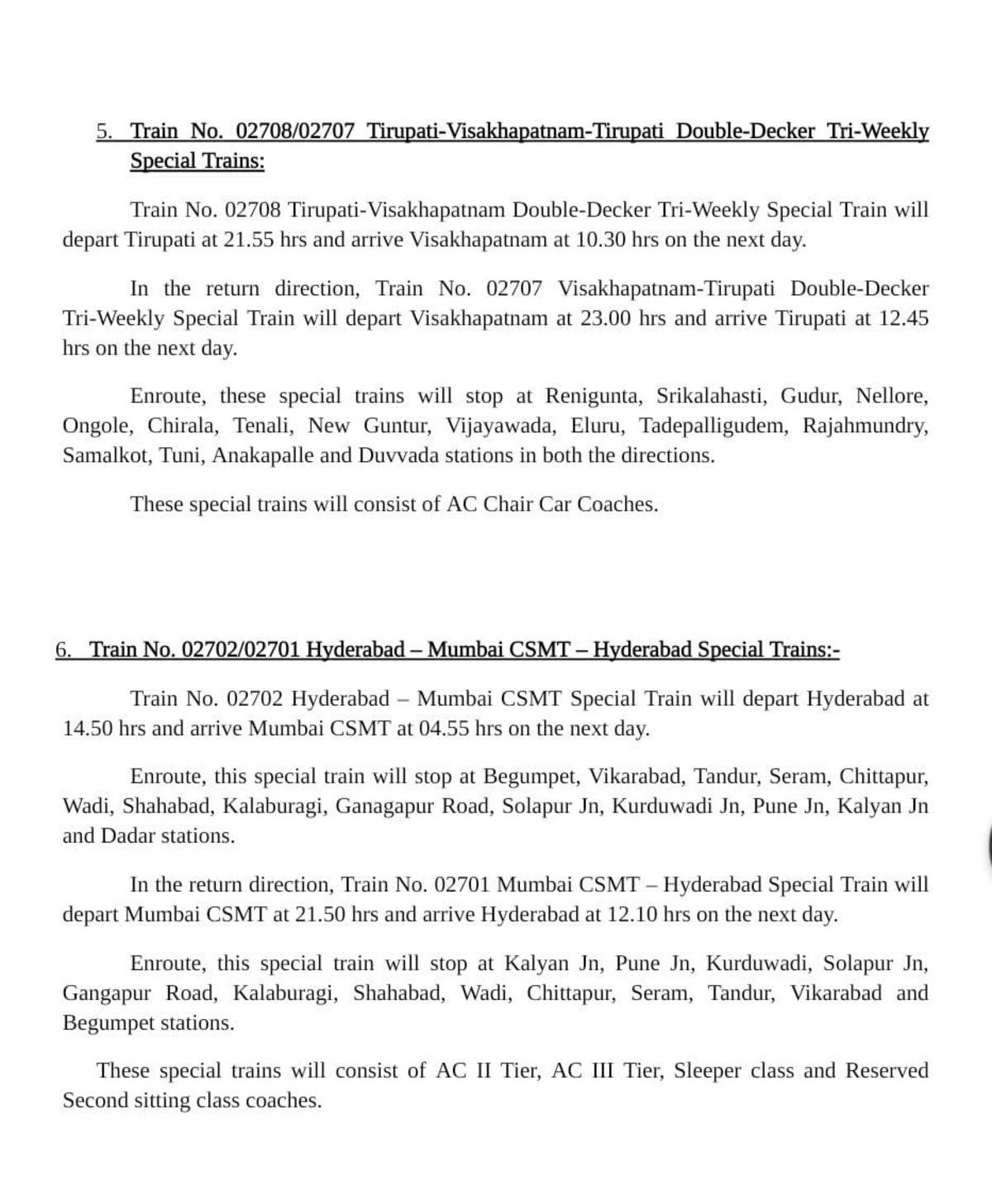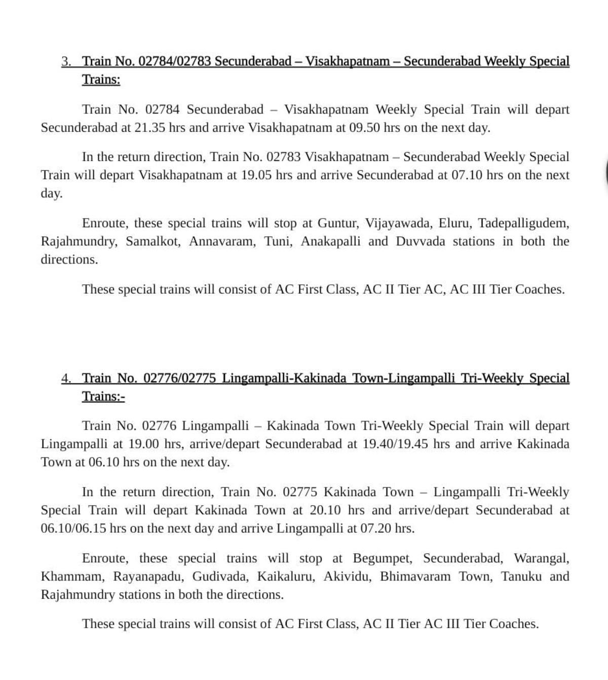 Uncategorisedद म रेल की सात जोड़ी त्यौहार विशेष गाड़ियोंका अवधि बढ़ा 25th Nov 2020 Rail Duniya 02785/86 काचेगुड़ा मैसूरु काचेगुड़ा त्यौहार स्पेशल का समय परिवर्तन Share this: Share on WhatsApp (Opens in new window) WhatsApp Share on X (Opens in new window) X Share on Facebook (Opens in new window) Facebook Share on Telegram (Opens in new window) Telegram Email a link to a friend (Opens in new window) Email Like Loading... Related Published by Rail Duniya Rail Duniya is a magazine publishing all India train timings since 1988. View all posts by Rail Duniya