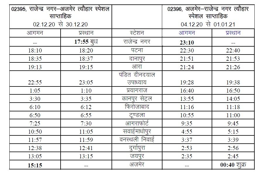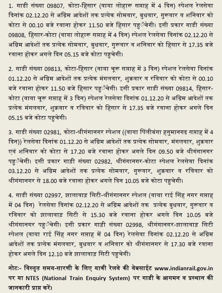 यात्रीगण कृपया यह समझ ले, जो भी गाड़ियाँ त्यौहार विशेष है वह सीमित अवधि के लिए दिसम्बर तक ही चलाई जा रही है।
