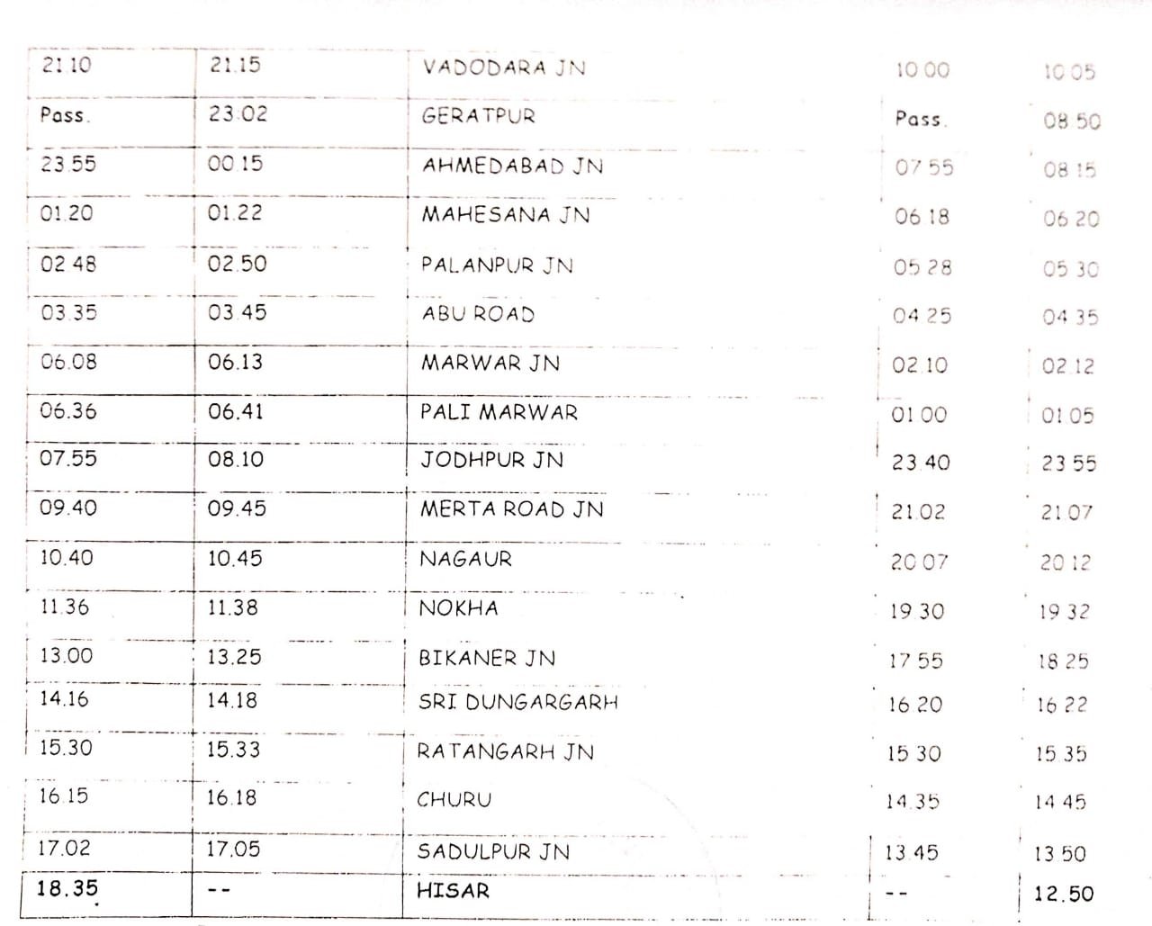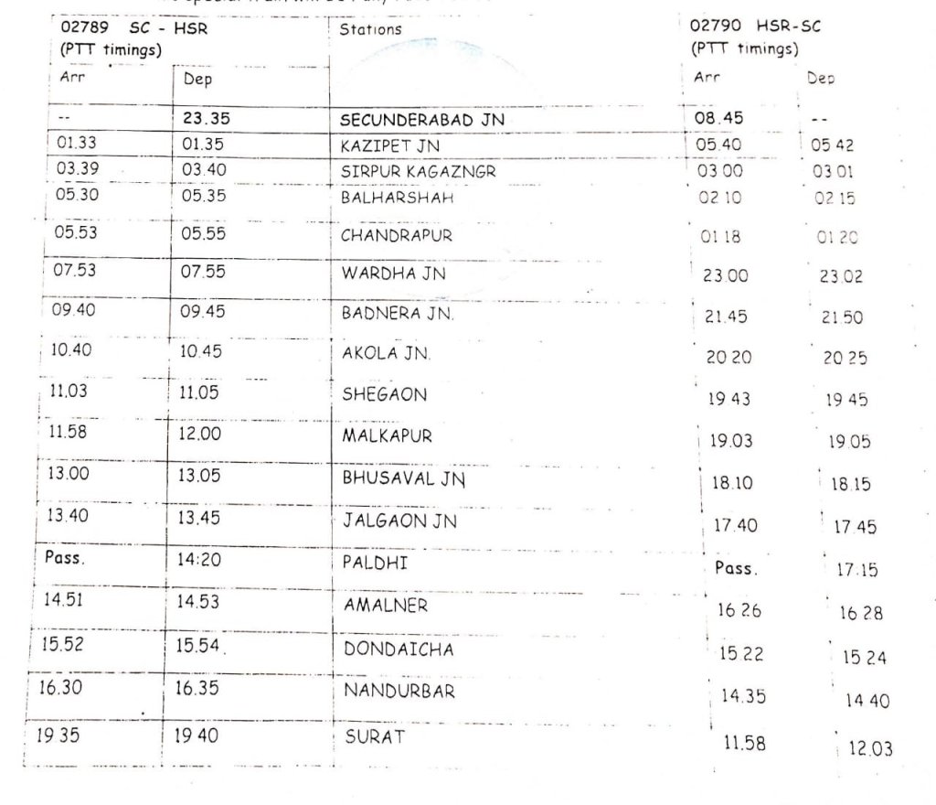 राजस्थान तेलंगाना के बीच चलनेवाली बेहद लोकप्रिय गाड़ी 17037/38 हिसार सिकंदराबाद हिसार एक्सप्रेस के समय-सारिणी में बदलाव करके उसे सुपरफ़ास्ट (12789/90) में बदल दिया गया है।