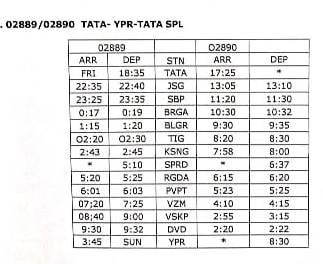 5: 02889/90 टाटानगर यशवंतपुर टाटानगर