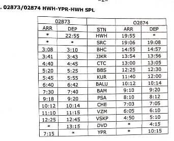 1: 02873/74 हावडा यशवंतपुर हावडा