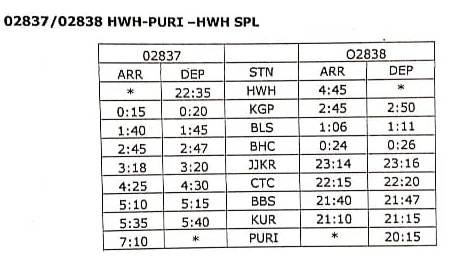 7: 02837/38 हावडा पूरी हावडा