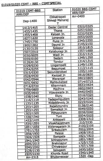 6: 01019/20 छत्रपति शिवाजी महाराज टर्मिनस भुबनेश्वर छत्रपति शिवाजी महाराज टर्मिनस